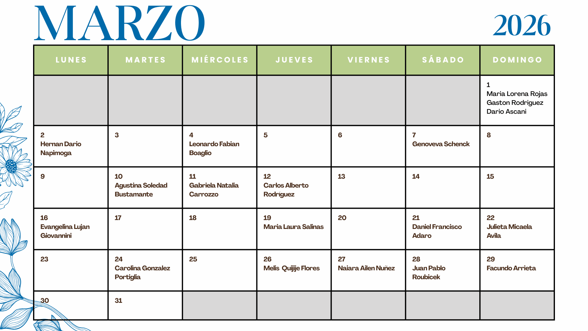 Cumpleaños marzo - 2026